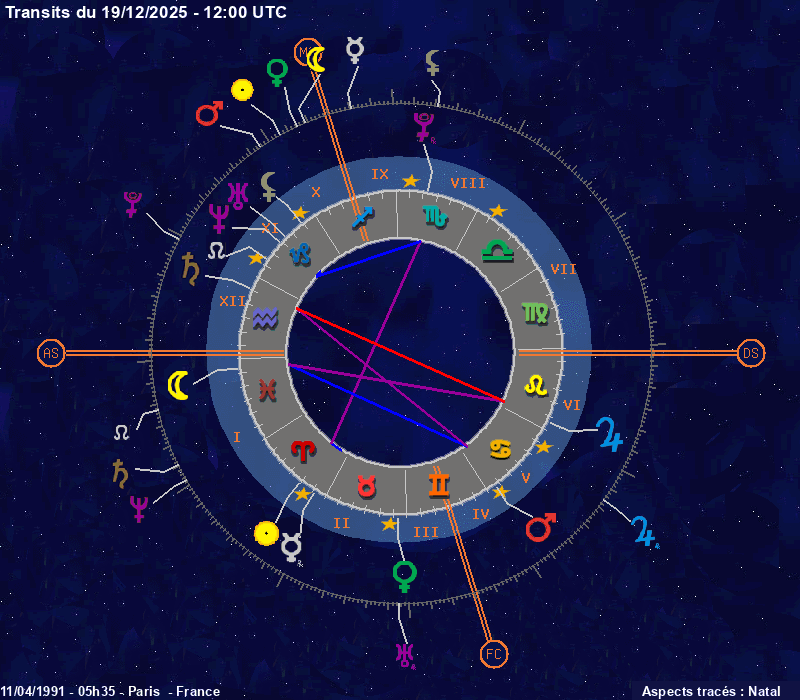 Click on the chart to switch between Natal and Transit aspects