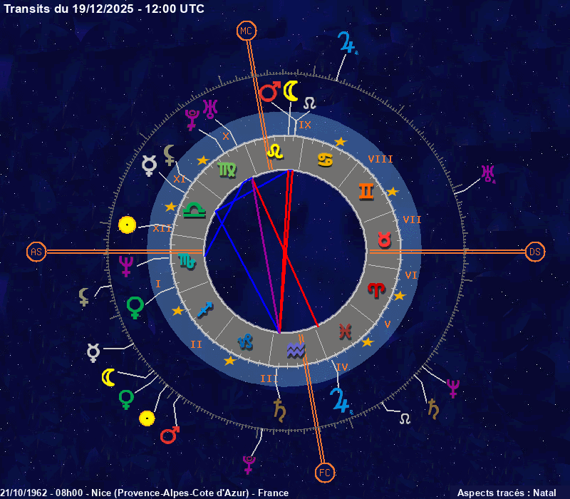 Click on the chart to switch between Natal and Transit aspects
