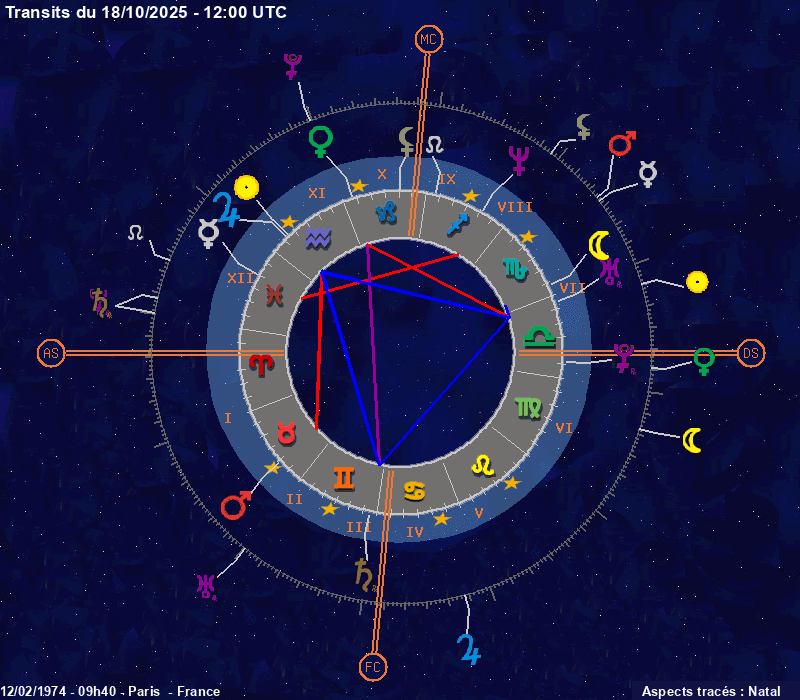 Click on the chart to switch between Natal and Transit aspects