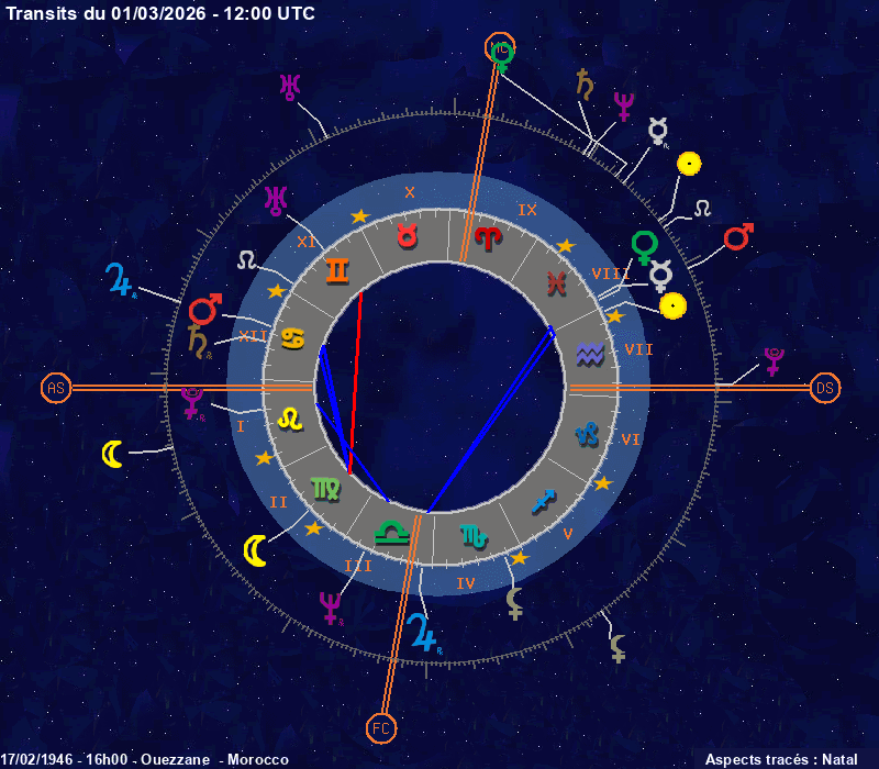 Click on the chart to switch between Natal and Transit aspects