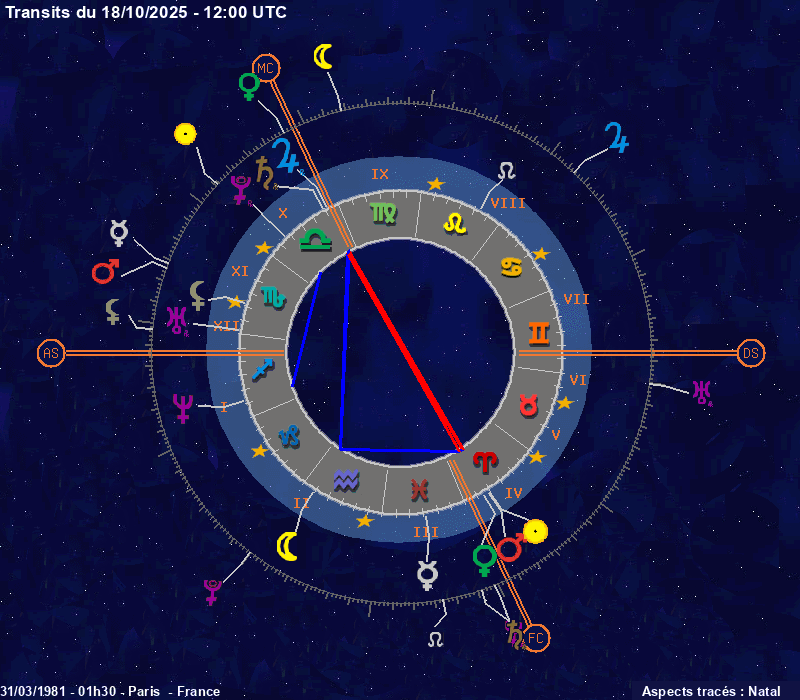 Click on the chart to switch between Natal and Transit aspects