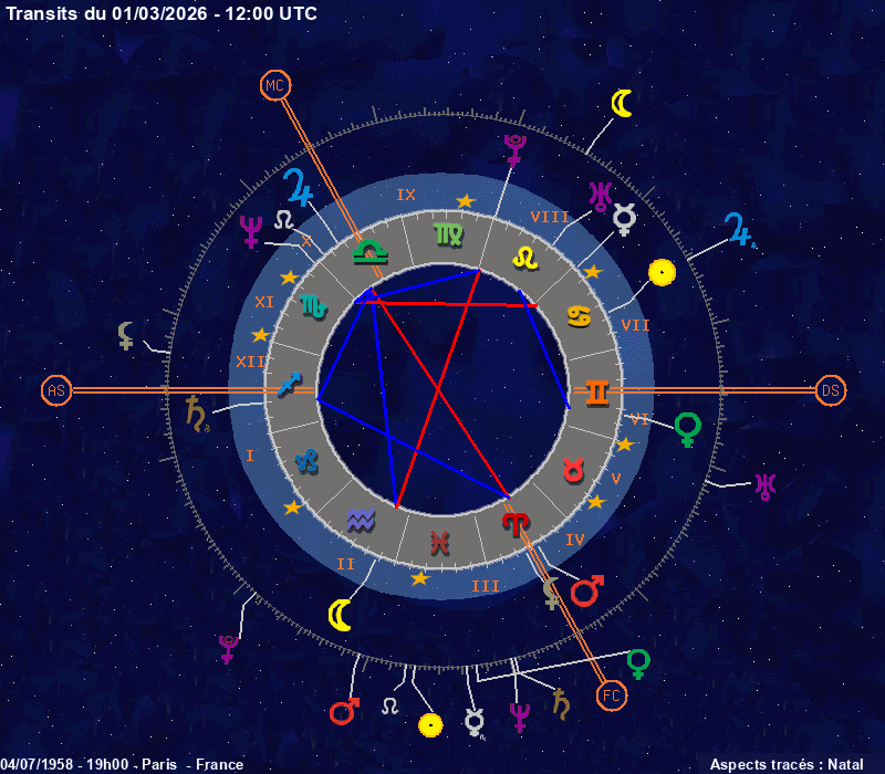 Click on the chart to switch between Natal and Transit aspects