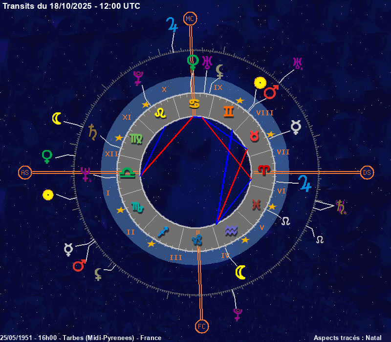 Click on the chart to switch between Natal and Transit aspects