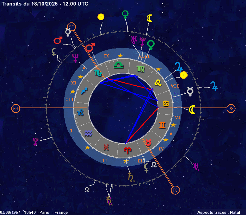 Click on the chart to switch between Natal and Transit aspects
