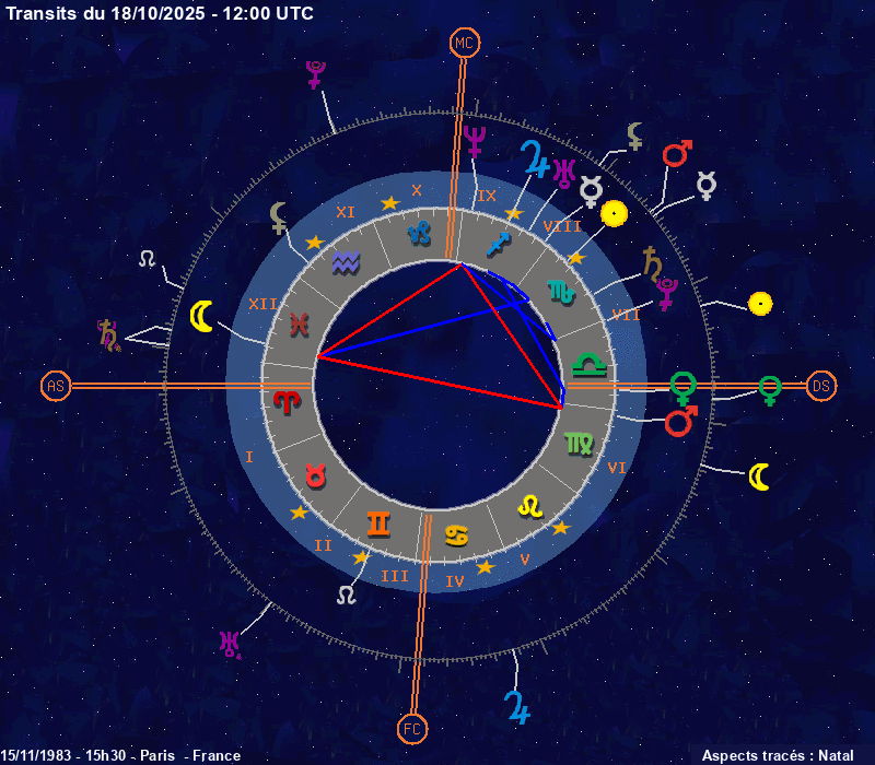 Click on the chart to switch between Natal and Transit aspects