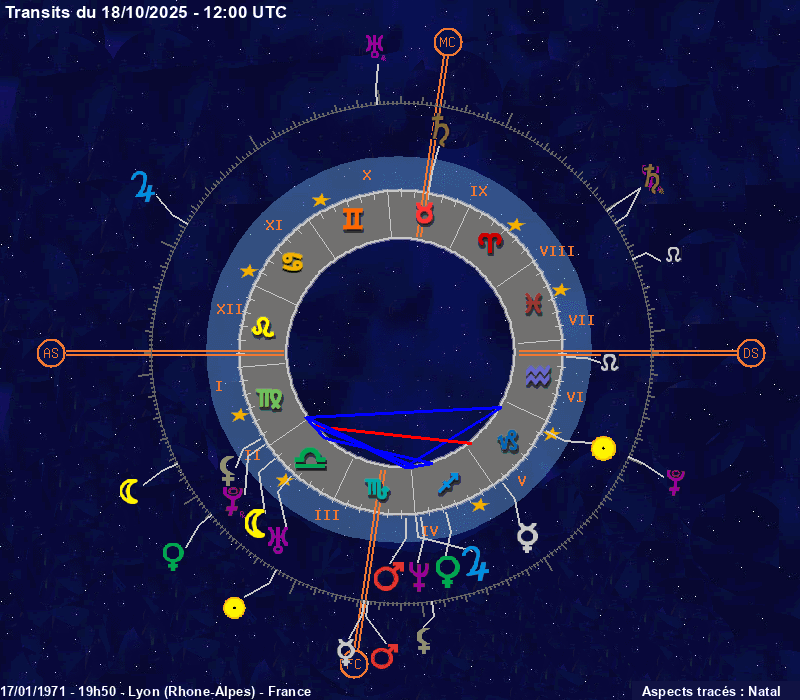 Click on the chart to switch between Natal and Transit aspects