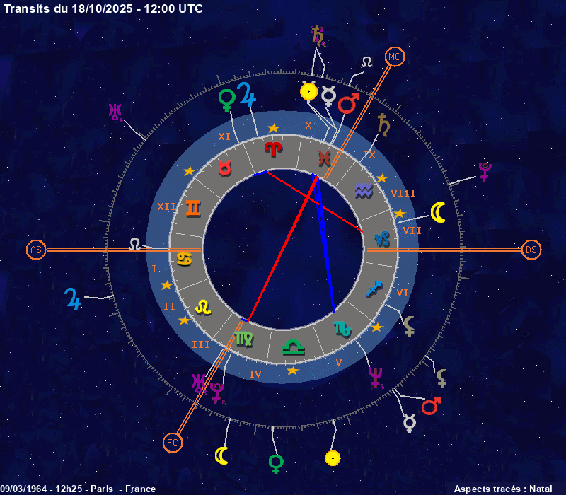 Click on the chart to switch between Natal and Transit aspects