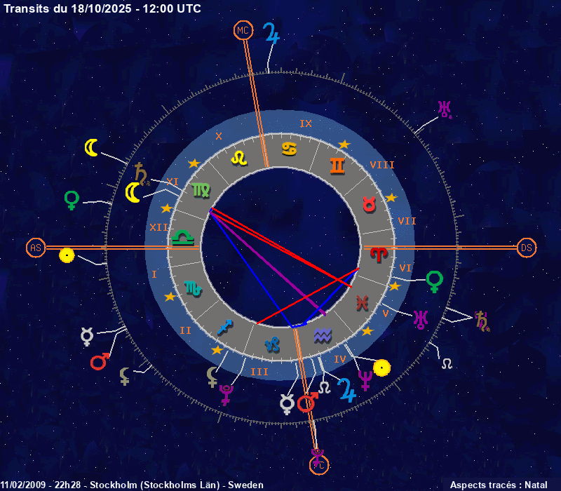 Click on the chart to switch between Natal and Transit aspects
