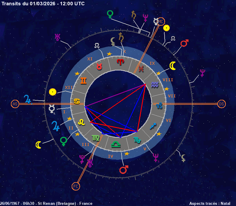 Click on the chart to switch between Natal and Transit aspects