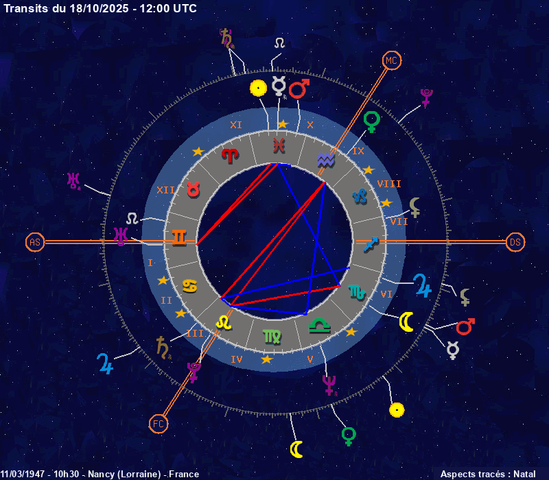 Planetary Transits for : Sat, 18 Oct 2025 12:00