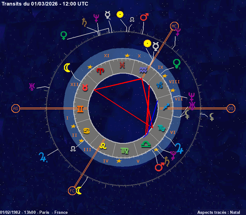 Click on the chart to switch between Natal and Transit aspects