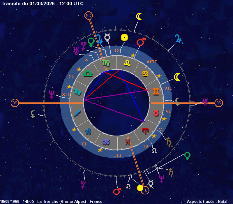 Click on the chart to switch between Natal and Transit aspects