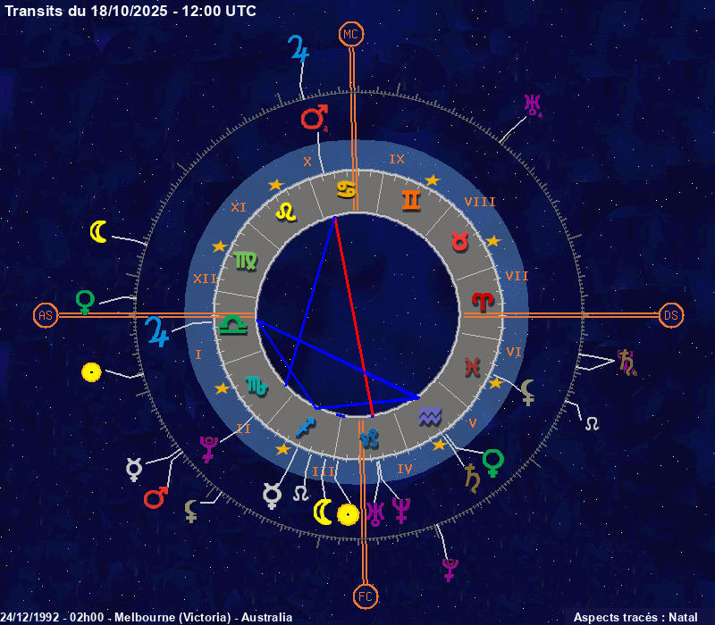 Click on the chart to switch between Natal and Transit aspects