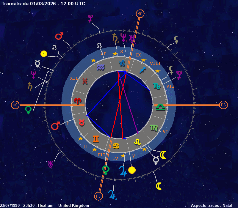 Click on the chart to switch between Natal and Transit aspects