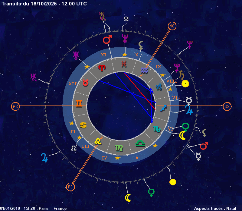 Planetary Transits for : Sat, 18 Oct 2025 12:00