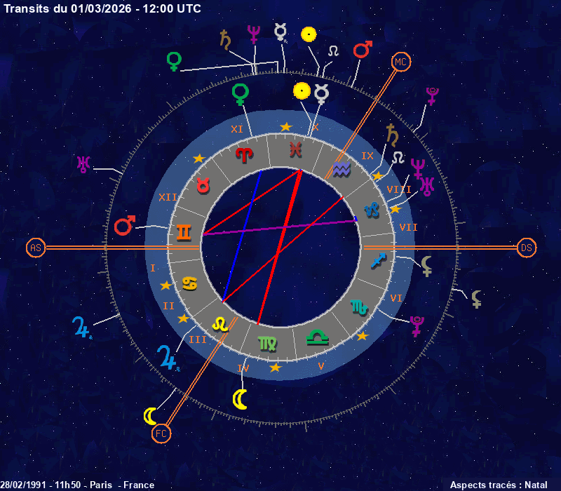 Click on the chart to switch between Natal and Transit aspects