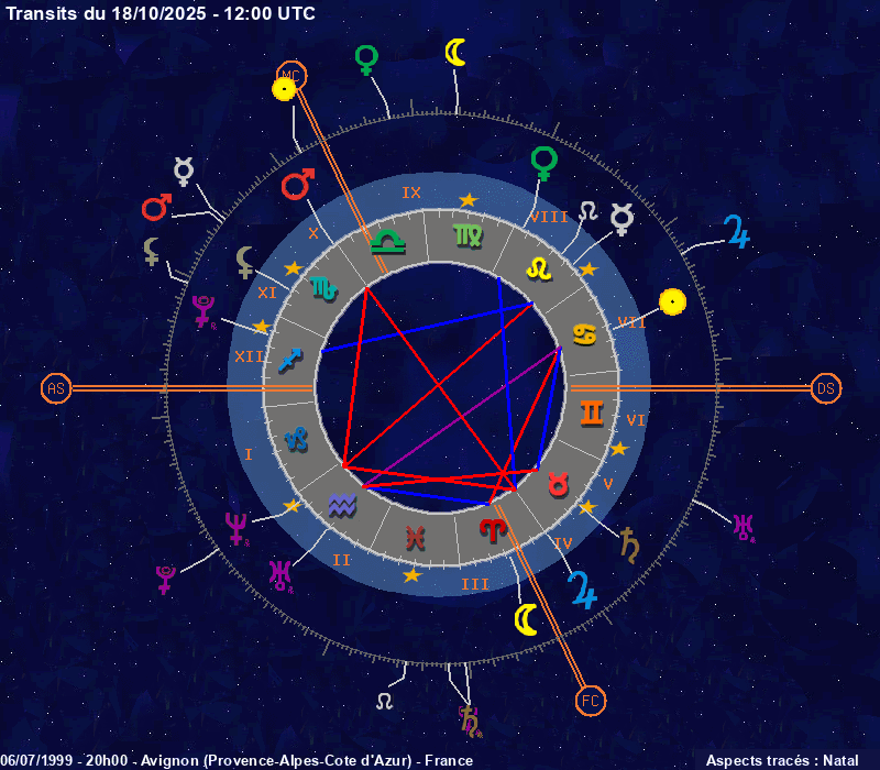 Click on the chart to switch between Natal and Transit aspects