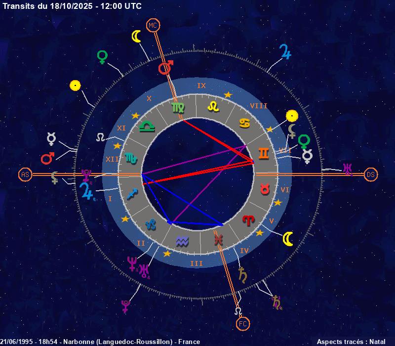 Click on the chart to switch between Natal and Transit aspects