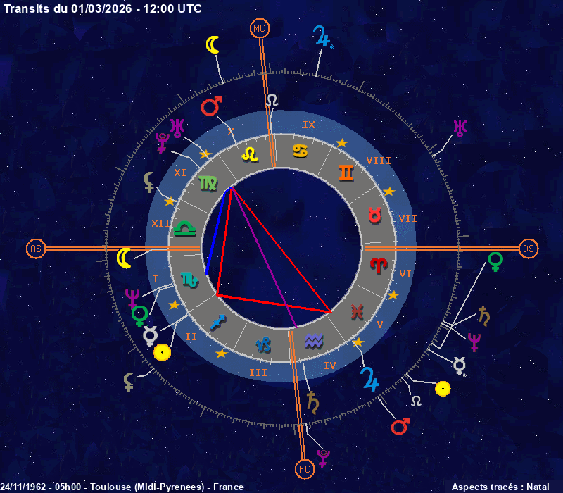 Click on the chart to switch between Natal and Transit aspects
