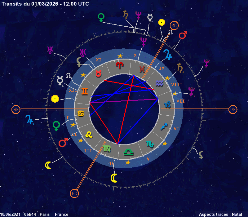 Planetary Transits for : Sun, 1 Mar 2026 12:00