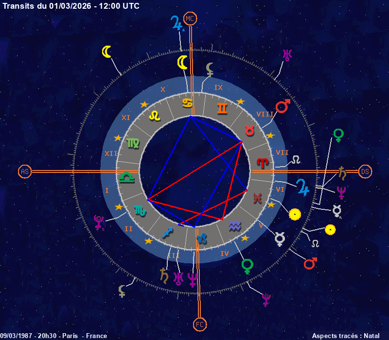 Click on the chart to switch between Natal and Transit aspects
