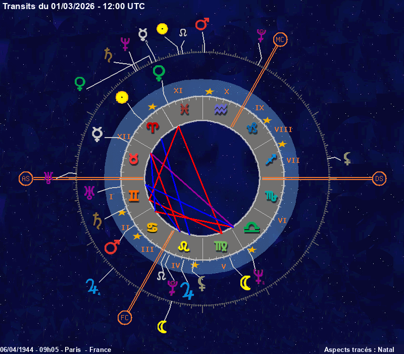 Click on the chart to switch between Natal and Transit aspects