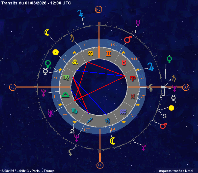 Click on the chart to switch between Natal and Transit aspects