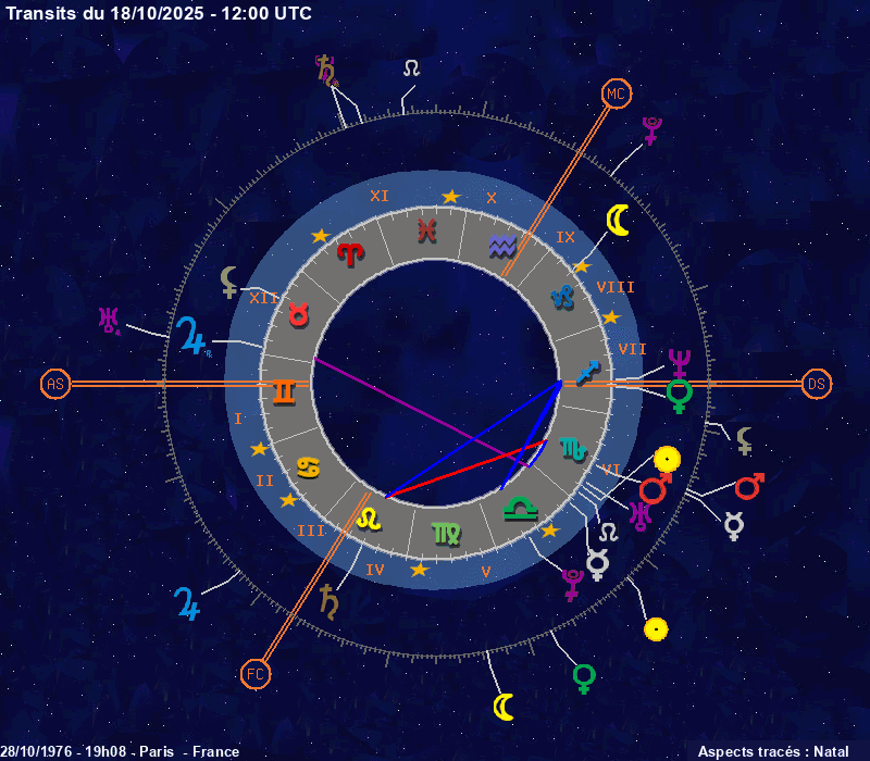Click on the chart to switch between Natal and Transit aspects