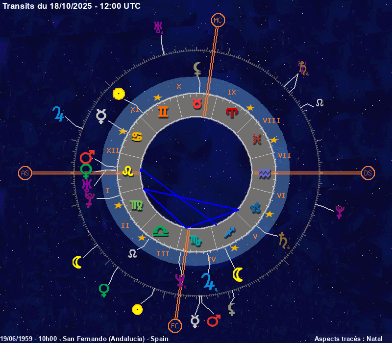 Click on the chart to switch between Natal and Transit aspects